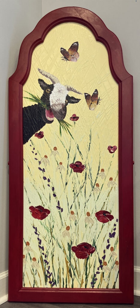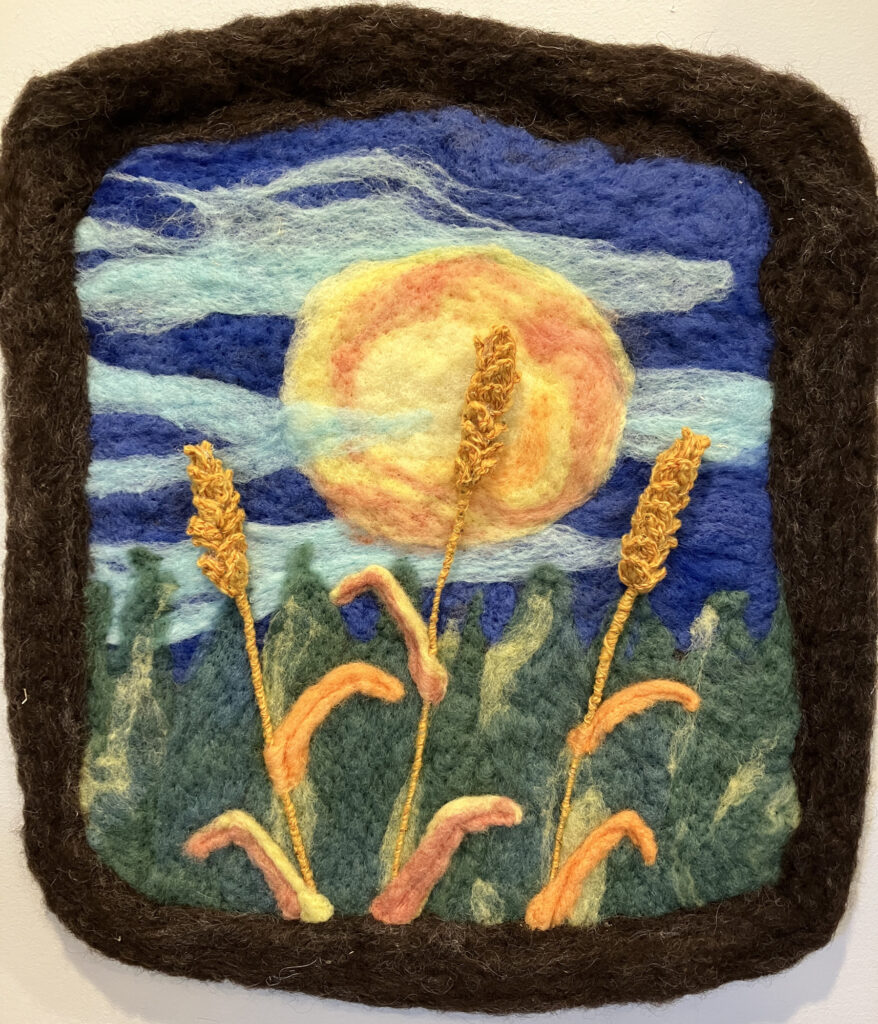 Born and raised in Germany I was on my path to move to Costa Rica, when I was intercepted by a tall guy at JFK airport who later became my husband. We decided to live together in the United States and raise a family. Along the way, I wore many hats: a wife, healthcare professional, gardener, farmer, cheesemaker, wool processor, mother, goat midwife, an artist, outdoor enthusiast, and more; always learning, always curious. Now, many moves and moons later, we settled in Bedford, VA for our country home. Our children are grown and the farm shrank down a bit, so we both can devote more time to our art. This is why I applied for and became the emerging artist of the year at the Bower Center